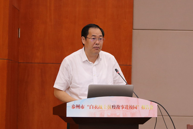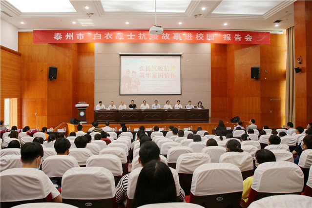 为深入推进“弘扬抗疫精神、筑牢家国情怀”主题教育活动,6月3日,公司举办泰州市“白衣战士抗疫故事进校园”报告会暨谈球吧体育官网第四期工匠·劳模讲堂。泰州市卫健委副主任翟德祥、泰州市教育局副局长王俊鹏,公司党委副书记、董事长徐向明,公司党委副书记、副董事长王美林,公司党委常委、副董事长鲁学军与线上线下3000余名师生共同观看了报告会。报告会由校员工工作部部长唐帅主持。
